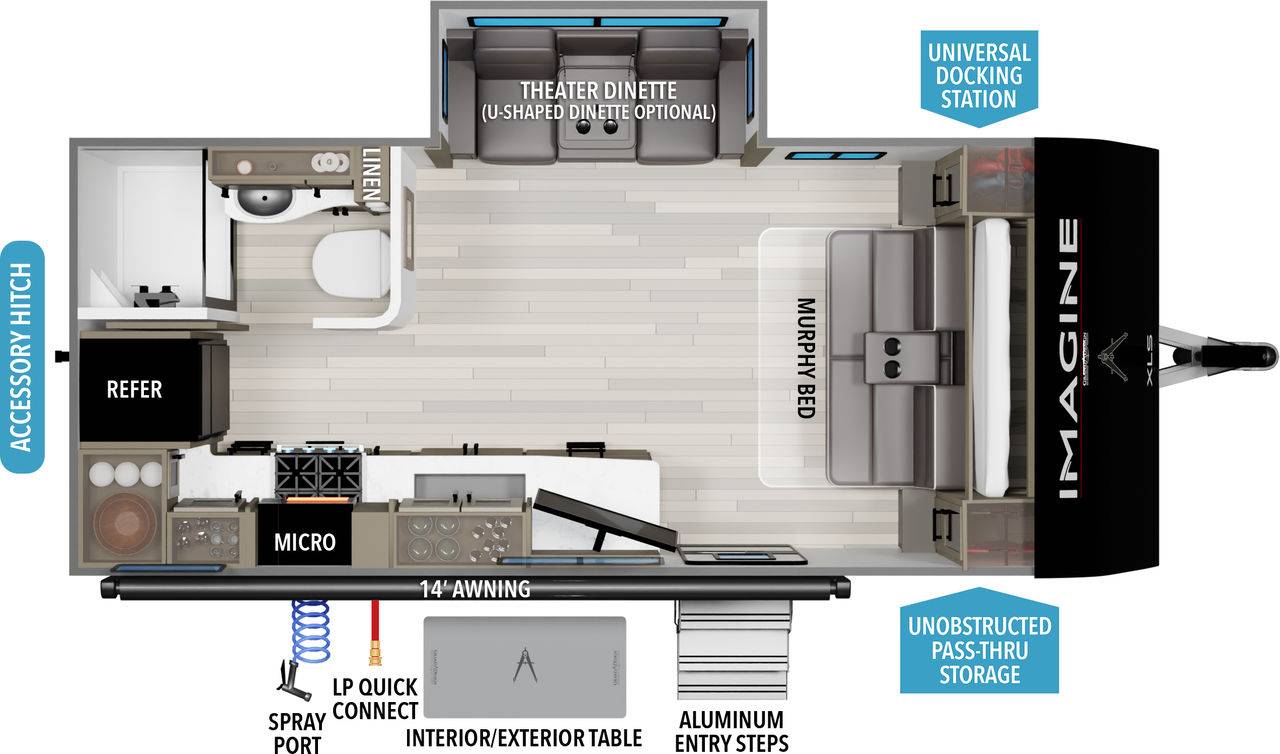 Light on weight, not substance, the Imagine XLS features floorplans starting at under 5,000-pounds. XLS pairs perfectly with even more of today's medium-duty trucks and SUVs, without the compromise that other manufacturers feel forced to make in pursuit of lighter weight.