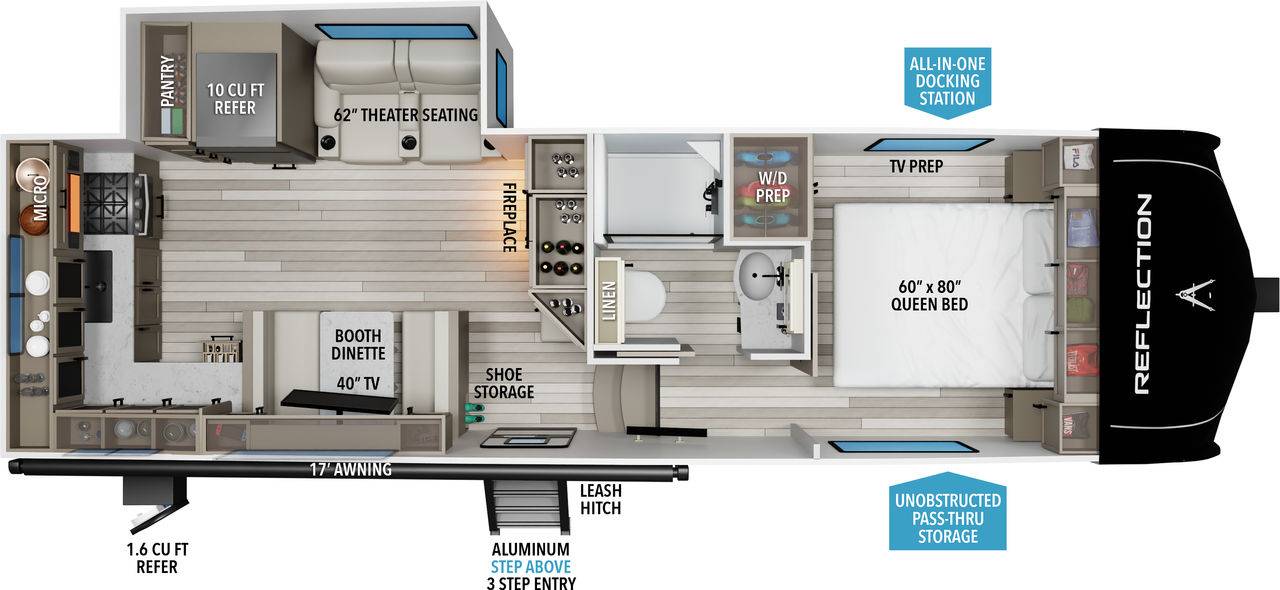 Everything you love about the Reflection and less. With floorplans starting under 7,000 pounds and 90-degree turning radius capabilities, you can tow in confidence with many of today’s half-ton and short-bed trucks. Keep your truck and ditch the stress with the Reflection 150 Series.